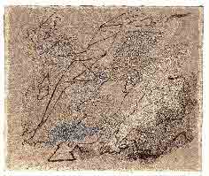 • 13 Bei André Masson, Homme et poisson, handelt es sich um eine Schüttung. Er hat Leim auf die Leinwand aufgetragen und danach Sand. Sand, der nicht haften blieb, wurde wieder weg geblasen. So entstand eine Figur, ein Motiv als Einladung zur Interpretation.